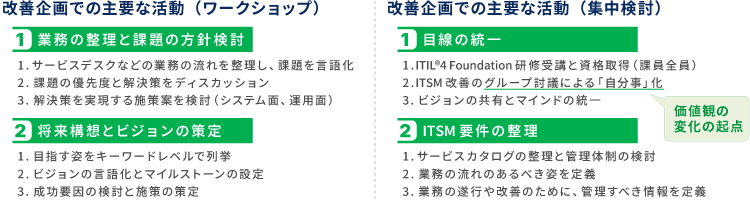 さらに同事業所は、ワークショップの内容とITILの考え方を実務に落とし込むため、ITSM改善に向けたグループ討議を実施しました。