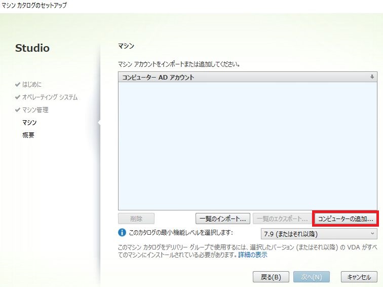 マシンカタログの作成では、環境内で使用するVDAサーバの登録をします。