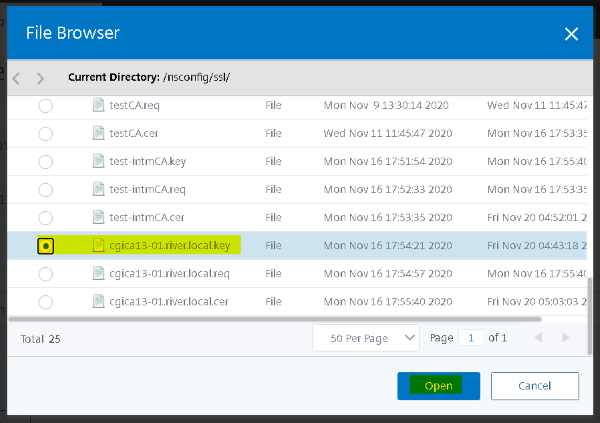 5.サーバ証明書用の秘密鍵を選択後、「Open」をクリックします