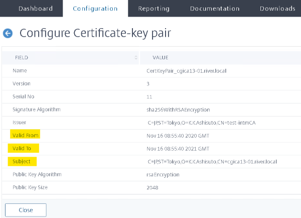 【Citrix Gateway VPX】ICA-Proxy 接続の検証環境構築手順の一例(2) で作成した秘密鍵と証明書を使用して「中間証明書」と「サーバ証明書のキーペア」をインストールします。中間証明書とサーバ証明書のリンクも行います。最後に、「サーバ証明書のキーペア」をVirtual Serverに紐付けます。
