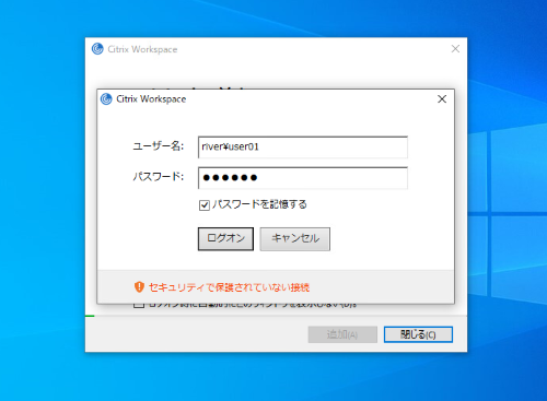 ※ユーザ名とパスワードを保存させて2回目以降はアカウント入力をスキップさせることも可能です