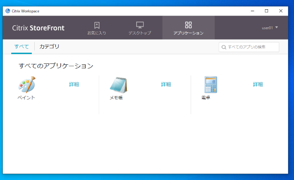 3.公開アプリケーションのアイコンをクリック後、公開アプリケーションや仮想デスクトップの画面が表示されます。