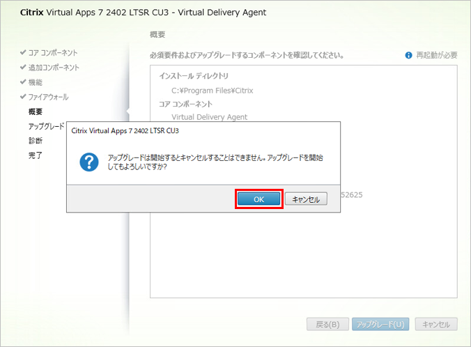 8. 「OK」をクリックします。アップグレードが開始されます。
