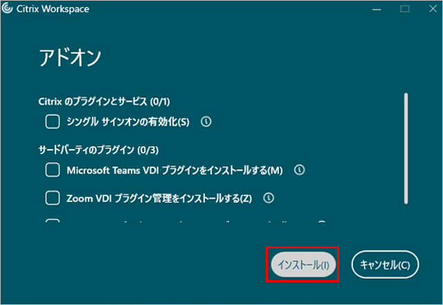 5. 利用したいアドオンがあればチェックを入れ、「インストール」をクリックします。