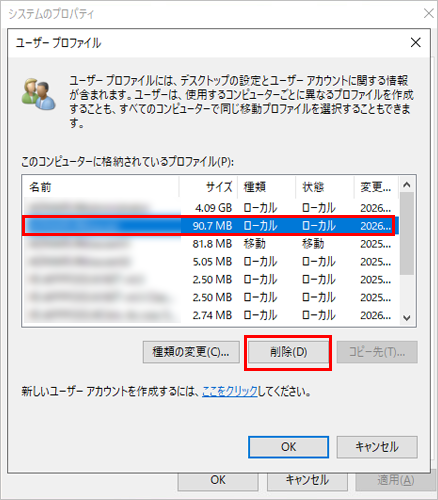3. 対象ユーザーのプロファイルフォルダを削除します。