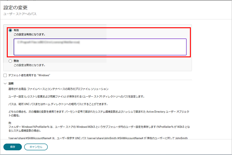 ※Citrix Profile Managementのコンポーネントがインストールされており、サービスが起動している場合に有効です。