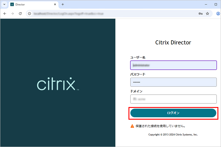 1. 管理者アカウントでCitrix Directorコンソールにログインします。