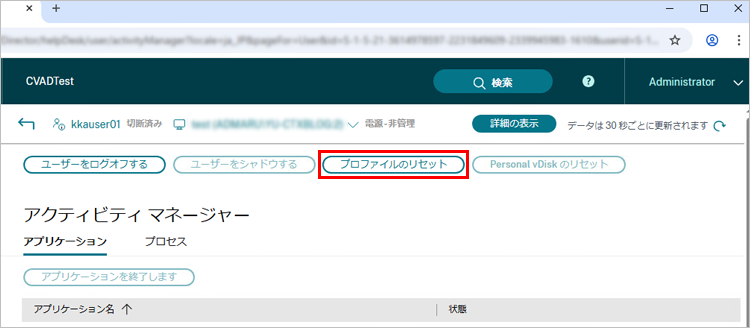 Citrix Profile Management または Microsoft 移動プロファイルを使用している場合、Citrix Directorからプロファイルのリセットも可能です。