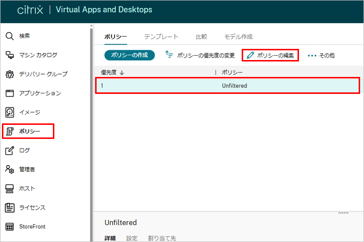 1. Citrix Web Studioにログインし、ご利用中のポリシーを開きます。