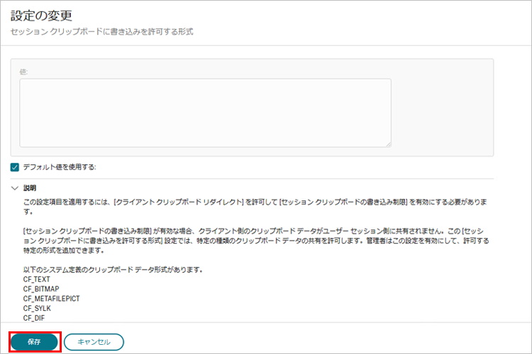 セッション クリップボードに書き込みを許可する形式(仮想環境へのコピー&ペーストを許可)