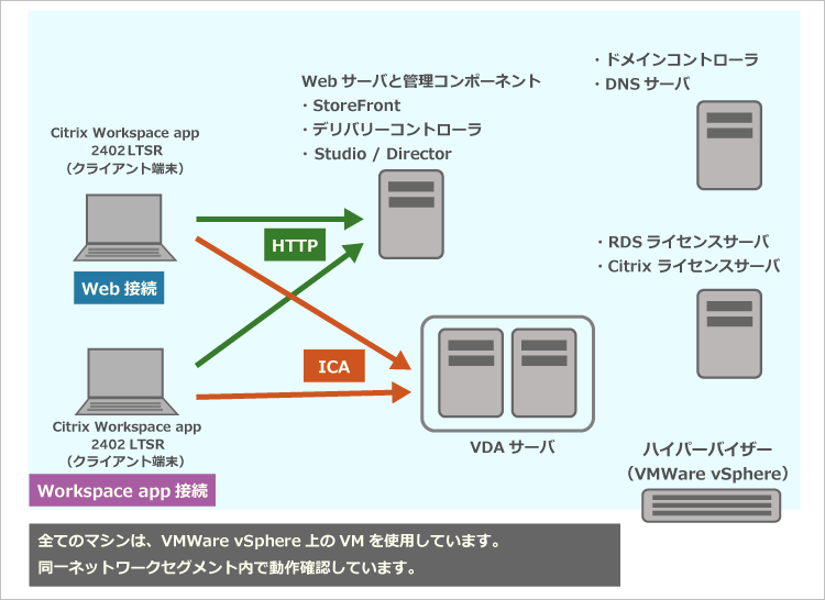 構成例とライセンスについては、以下の記事をご参照ください。XenAppの記事となりますが、構成に大きな変更はございません。 ※ライセンスについては弊社FAQの記事になりますため、契約ユーザーのみ参照可能です。