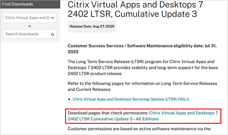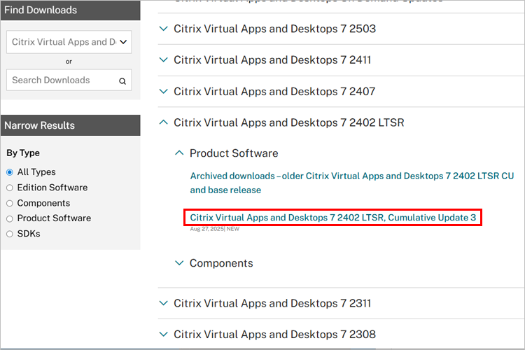 「Citrix Virtual Apps and Desktops 7 2402 LTSR, Cumulative Update 3」をクリックします。