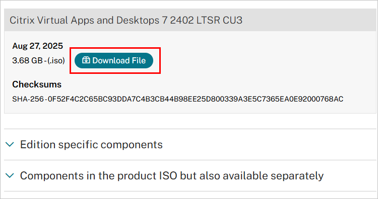 7. 「Citrix Virtual Apps and Desktops 7 2402 LTSR CU3」の「Download File」をクリックします。
