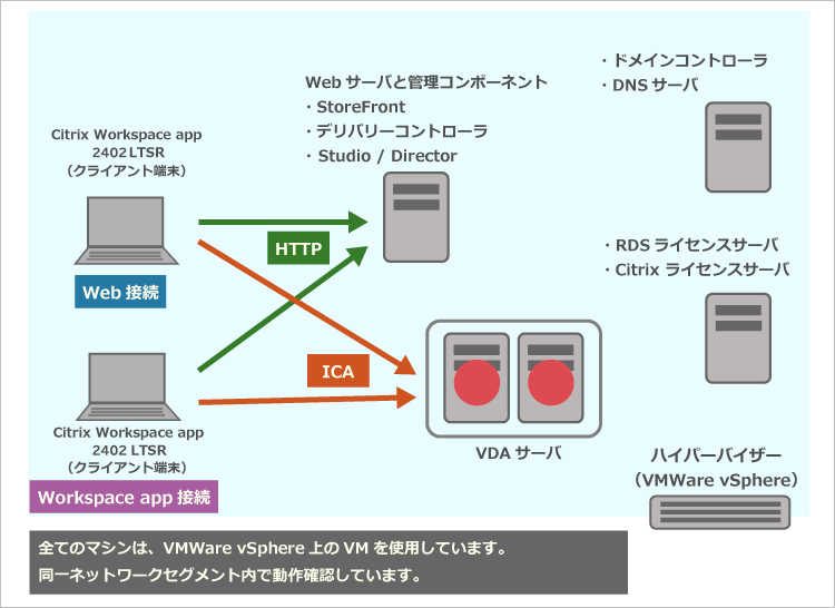 構成例とライセンスについては、以下の記事をご参照ください。XenAppの記事となりますが、構成に大きな変更はございません。 ※ライセンスについては弊社FAQの記事になりますため、契約ユーザーのみ参照可能です。