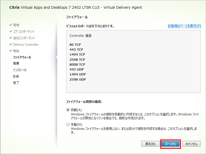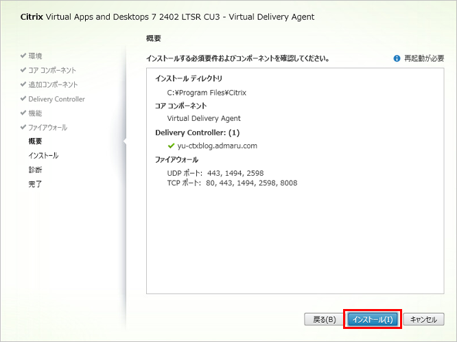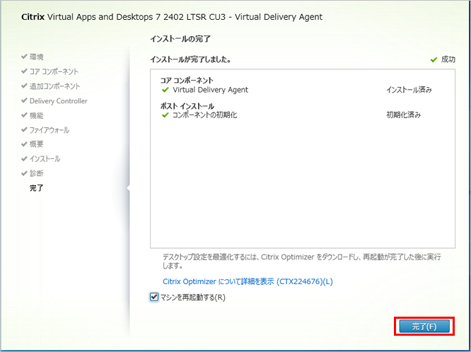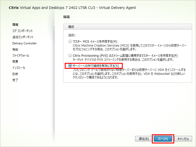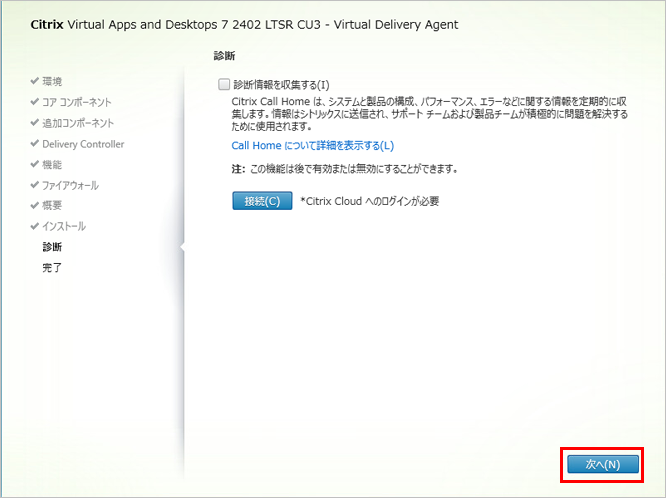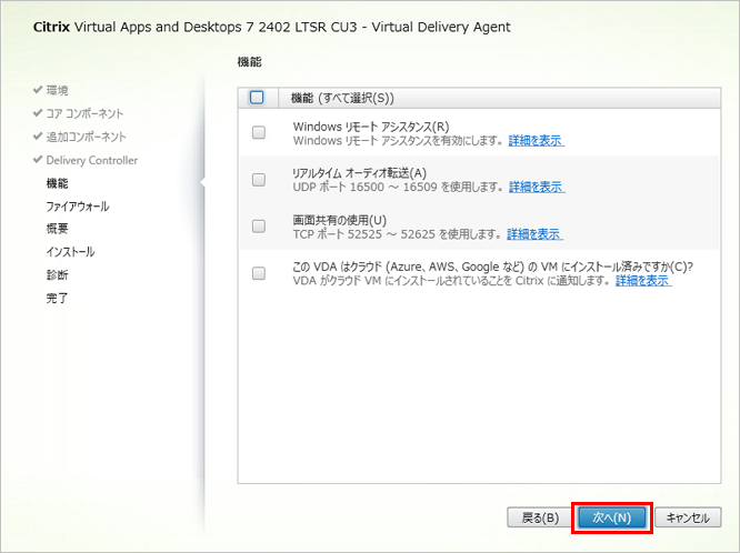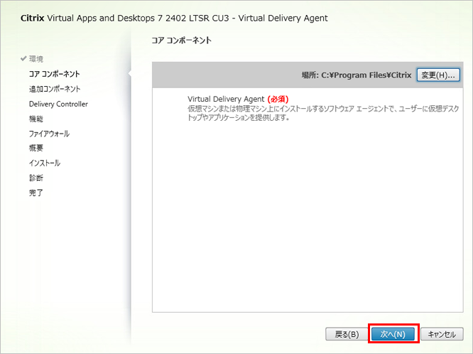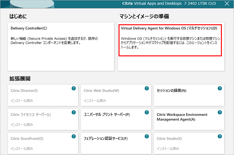4.Citrix Virtual Apps 7 2402 LTSR の新規インストール手順の一例(Virtual Delivery Agent)