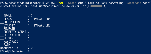 (gwmi -Class Win32_TerminalServiceSetting -Namespace root\cimv2\TerminalServices).SetSpecifiedLicenseServerList(("RDSライセンスサーバーのホスト名、もしくは、IPアドレス"))