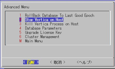 3) [2 Stop Vertica on Host] を選択後、[了解] を選択します。