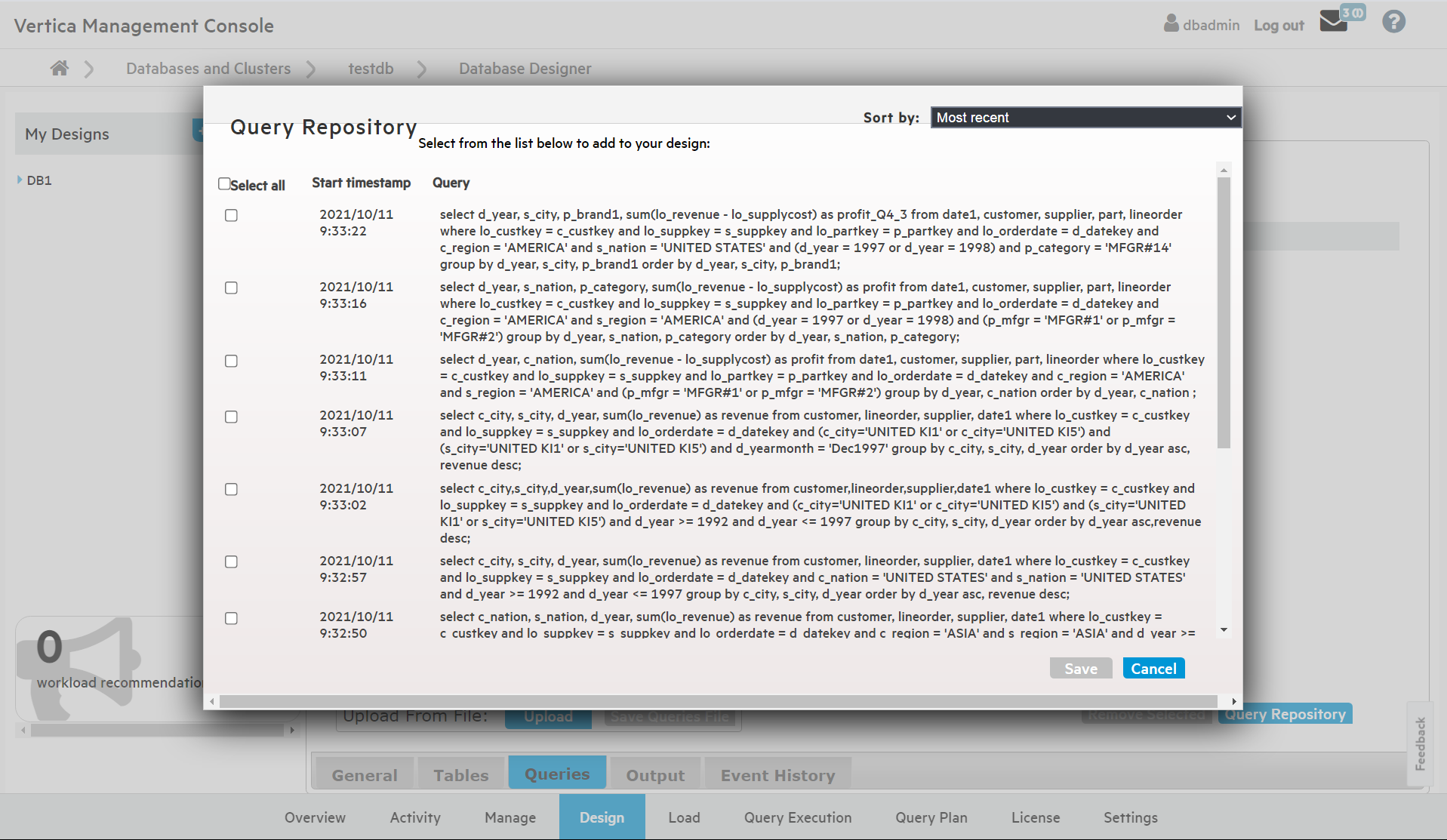 Query Repository:Verticaサーバ上で過去に実行されたことのあるSQLの履歴を読み込ませる方法です。