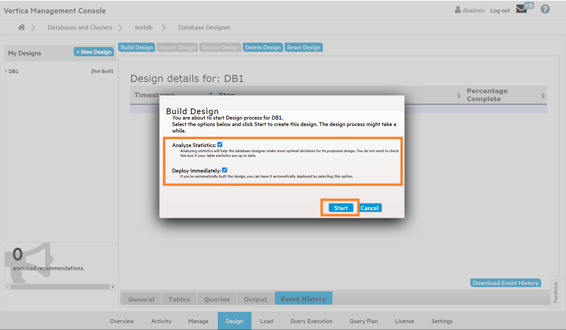 Analyze Statistics:Database Designerの実行時に統計情報を収集します。