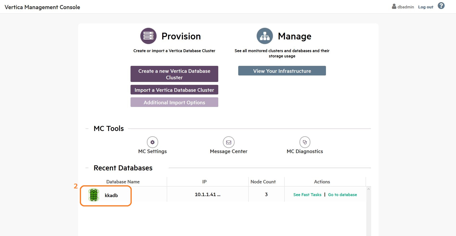 ”View Your Infrastructure” メニューをからデータベースを選択してください。