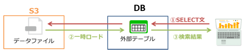 S3内に保管されているデータをデータソースとする外部テーブルをVertica上に作成しておくことで、S3のデータをVerticaのSELECT文でダイレクトに検索することが可能です。