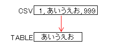CSVの1と999をロード対象外として「あいうえお」のみロードする例