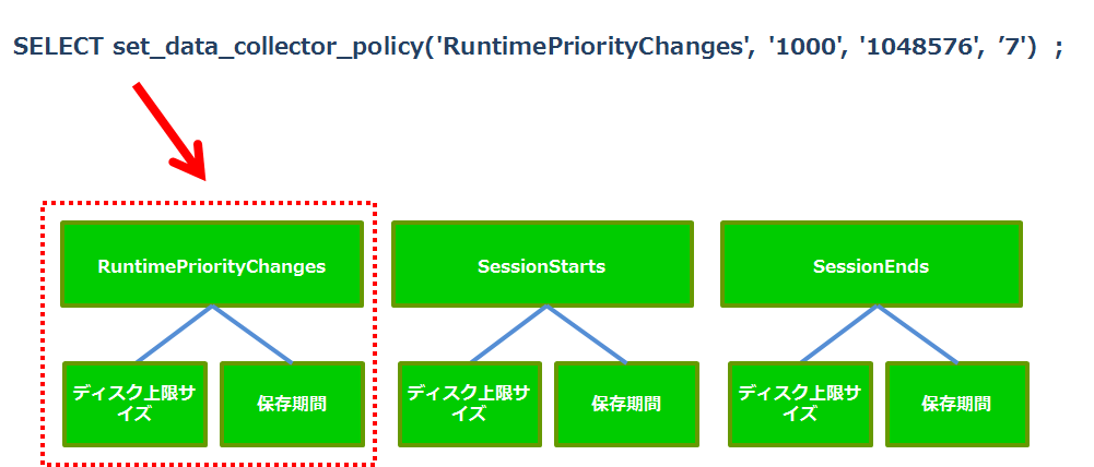 dbadmin=> SELECT set_data_collector_policy('RuntimePriorityChanges','1000','1048576','7');