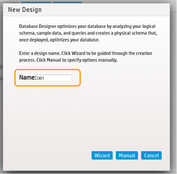 データベースデザインの名前を入力します。なお、これ以降はウィザードのステップに従って進めていきます。
