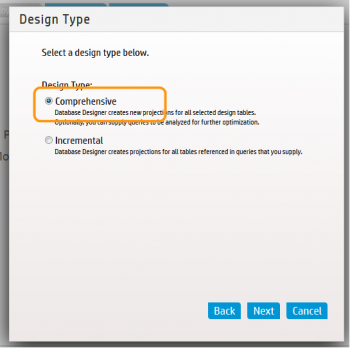 データベース全体に対してデータベースデザイナを実行するComprehensiveモードと、SQL単位でデータベースデザイナを実行するIncrementalモードの2つの選択肢があります。ここではデータベース全体に実施するComprehensiveモードを例に説明していきます。