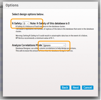 シングル構成はK-Safetyを「0」に指定します。3台構成はK-Safetyを「1」に指定、5台以上の構成はK-Safetyを「1」または「2」に指定します。相関関係モードは「Ignore」に指定します。