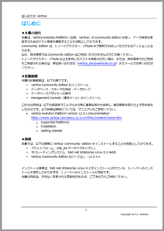 はじめてVerticaに触れる方でも作業に迷うことがないよう、簡易ガイド「はじめてのVertica」をご用意しております。