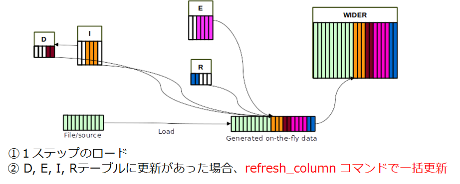 なお、非正規化したファクト表への追加/更新データを反映するためには、refresh_columnコマンドを実行します。