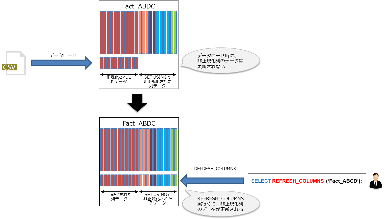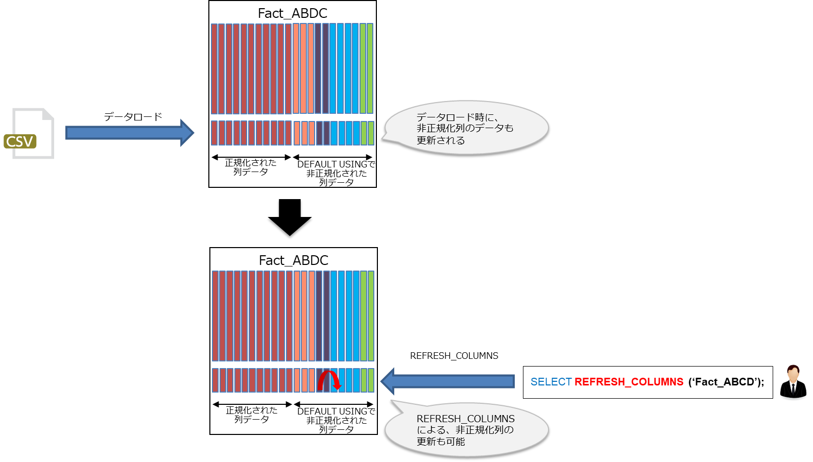 ・REFRESH_COLUMNS関数により任意のタイミングで非正規化列のデータを更新できる