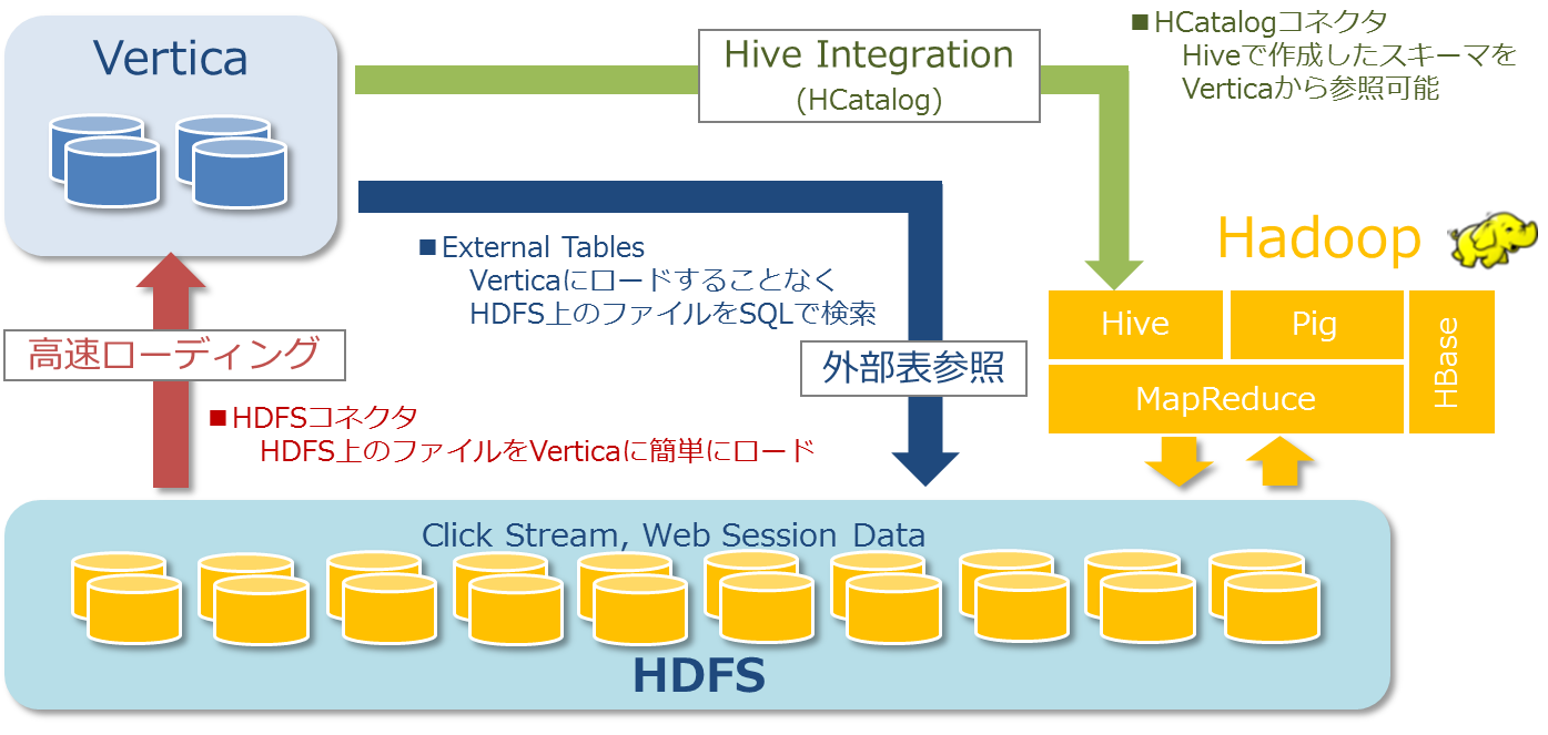 Verticaには、以下のようなHadoopと連携する機能が実装されています。