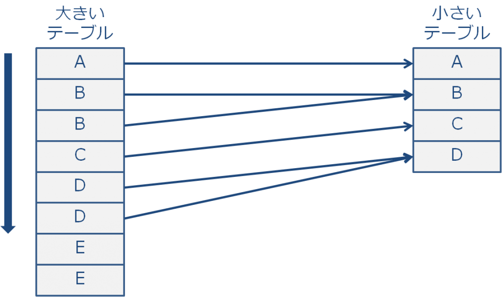 MERGE JOINはメモリ上にテーブルを作成する必要がないため、少ないメモリで結合処理を行うことができます。