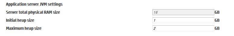 | Initial heap size | 初期ヒープサイズ:拡張監視では、最小値2GBが推奨されます。 (デフォルト値は1GBです。) |