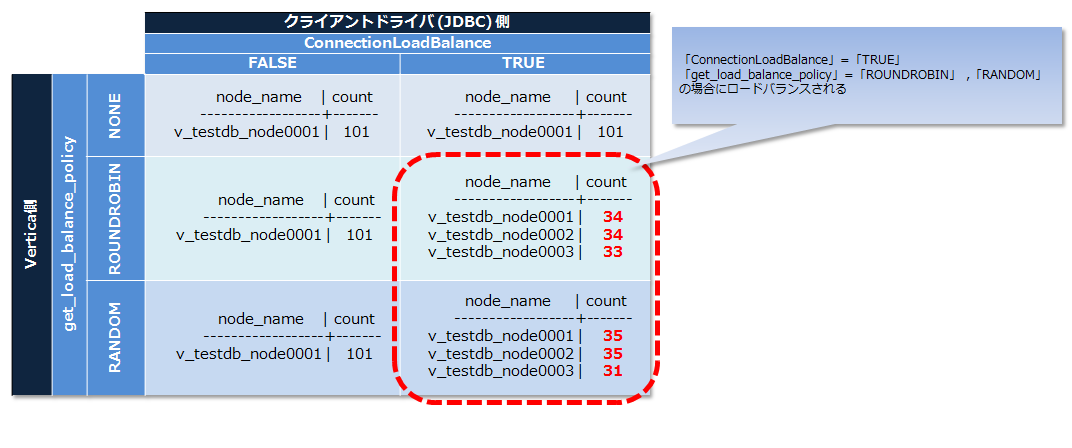 Verticaのロードバランス機能は、ODBC接続、JDBC接続、ADO.NET接続で利用できます。