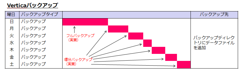・Verticaはフルバックアップ、差分バックアップ(差分増分)を自動的に行う