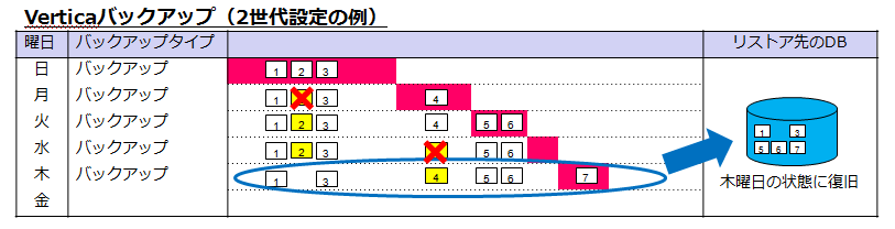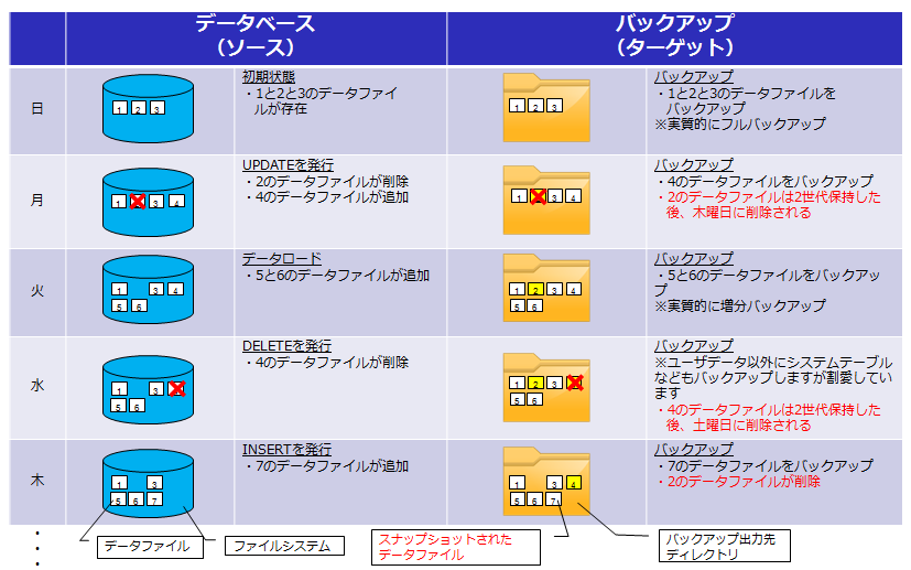 下図は曜日ごとのバックアップデータ内の状態を示しています。