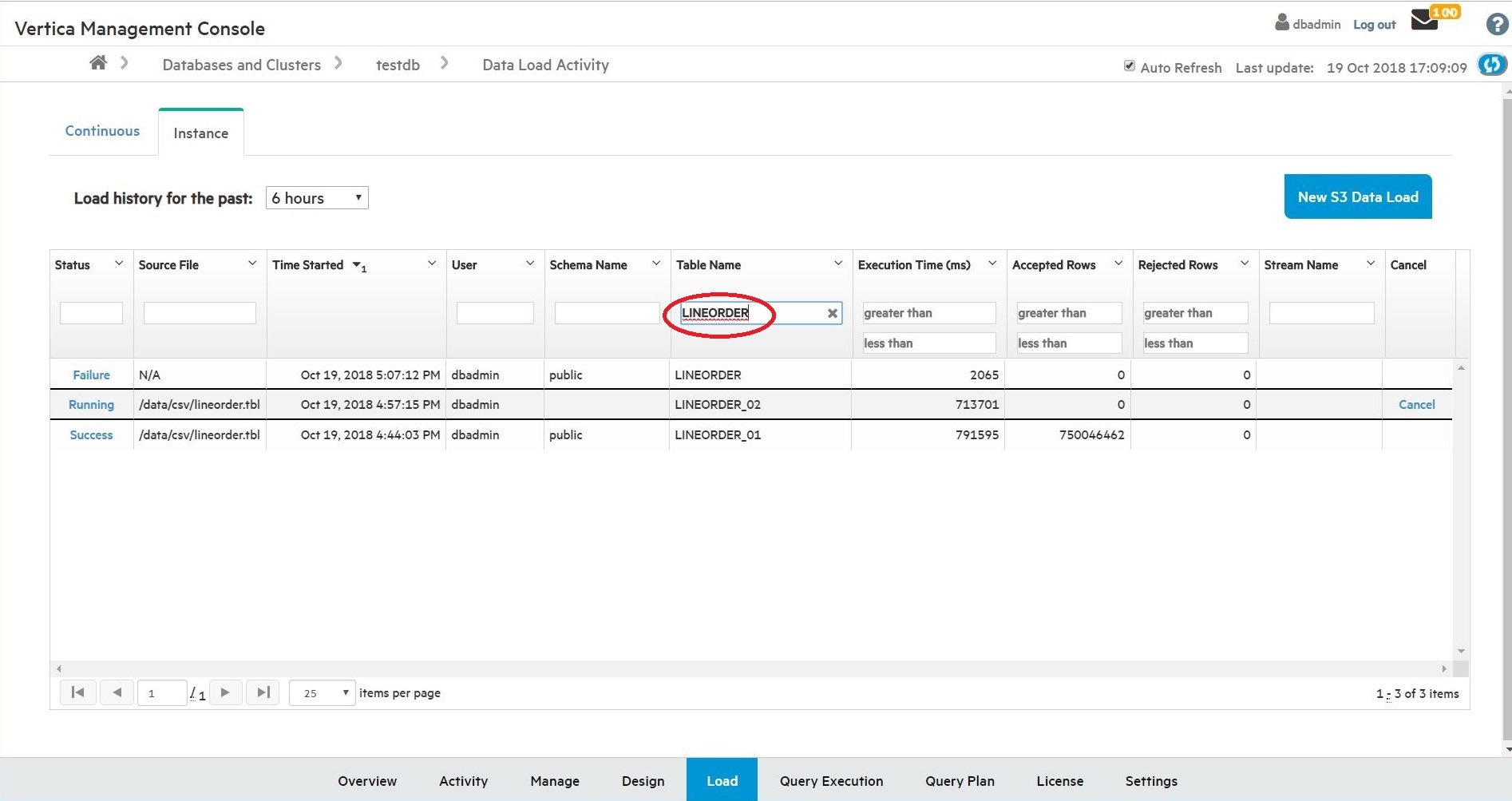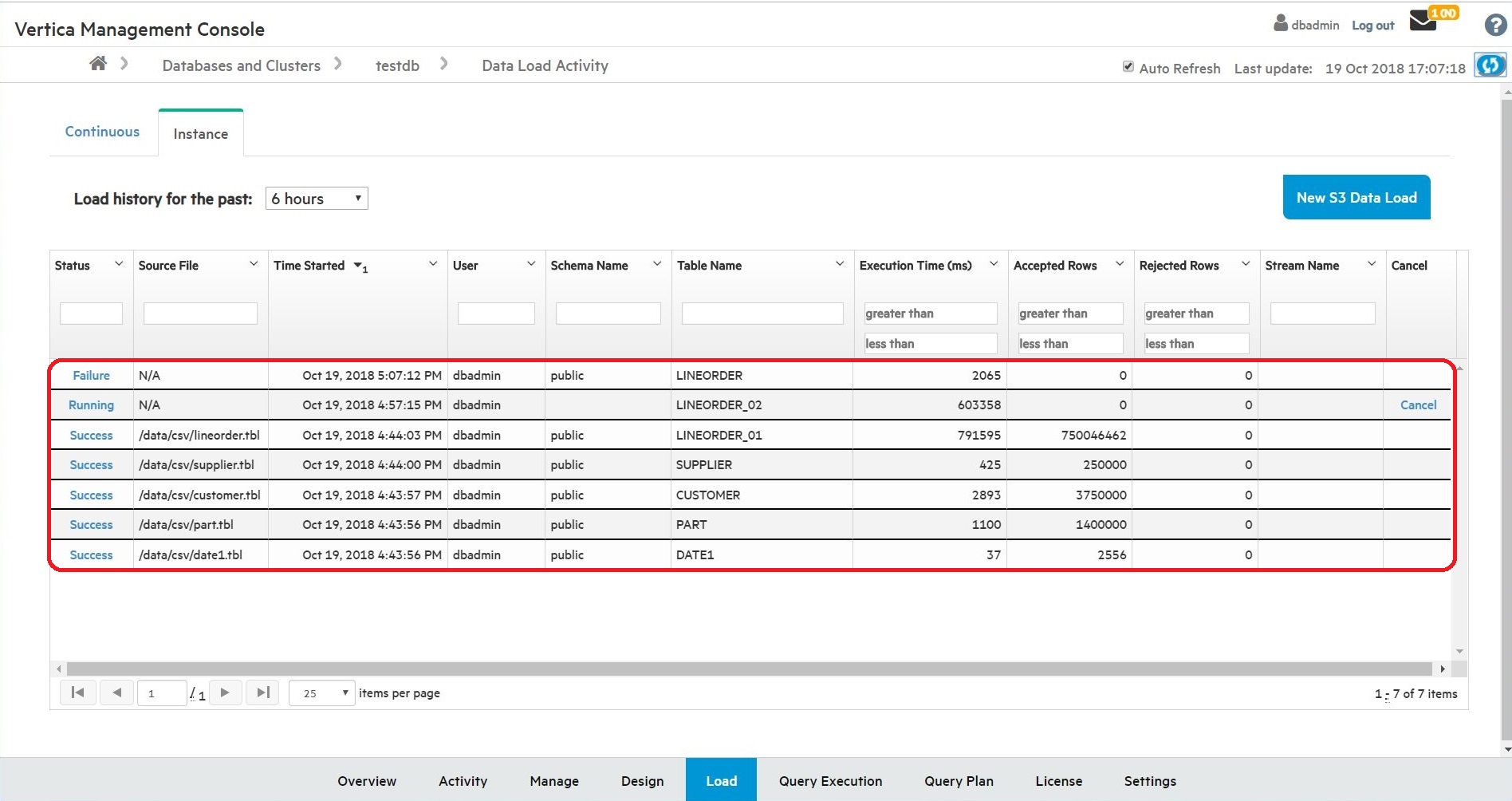 Vertica7.2 SP3(7.2.3)より、Management Consoleでデータロード状況を確認できるようになりました。