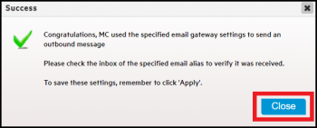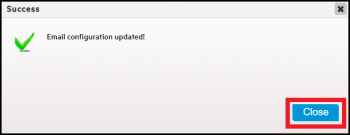 テストメールが無事送信された場合、以下のようなポップアップが表示されるので、「Close」をクリックします。