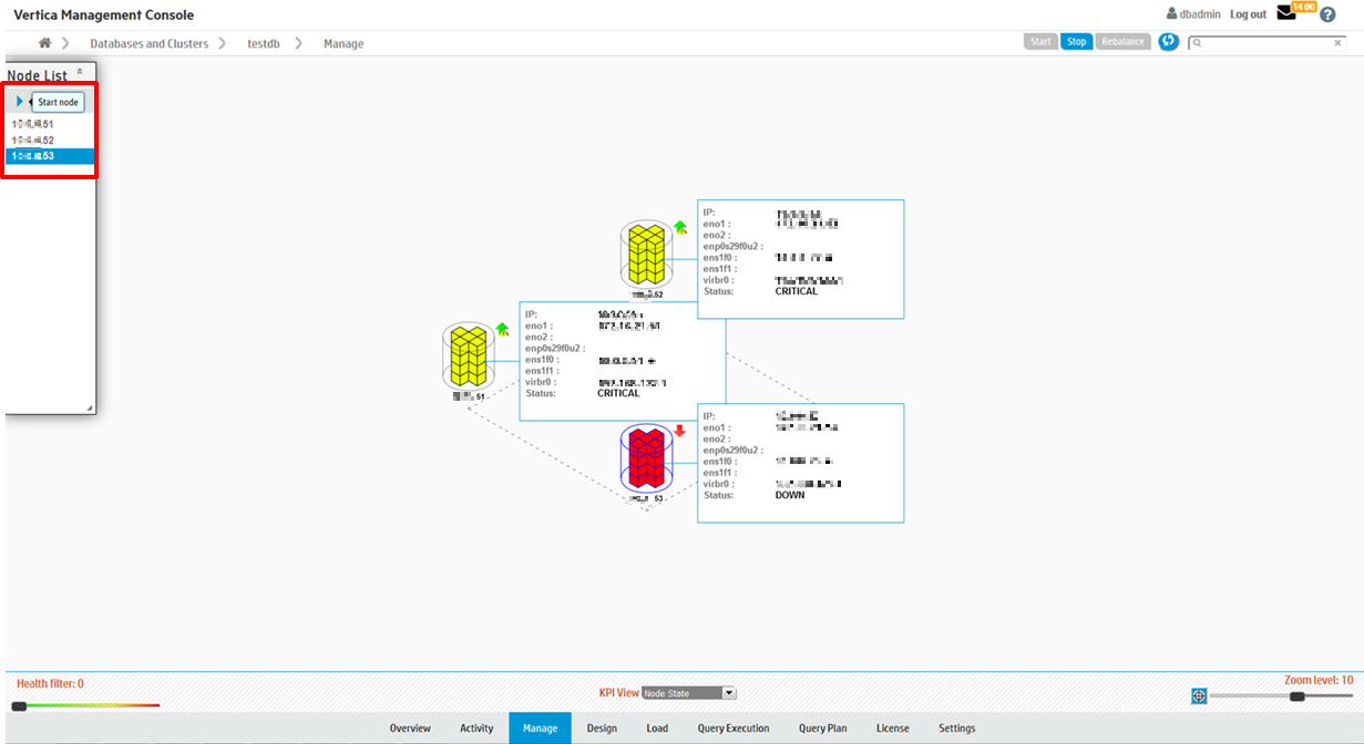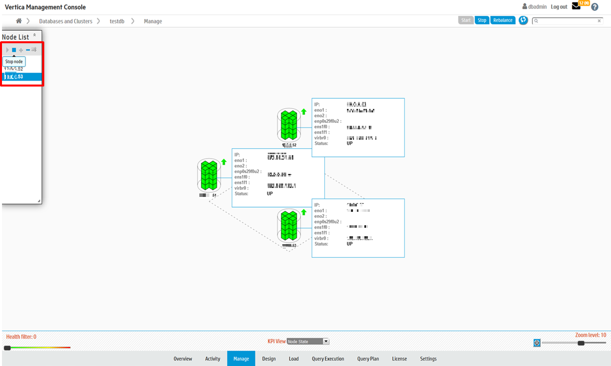 3. [Node list] から停止するノードを選択後、[Stop node]を選択します。