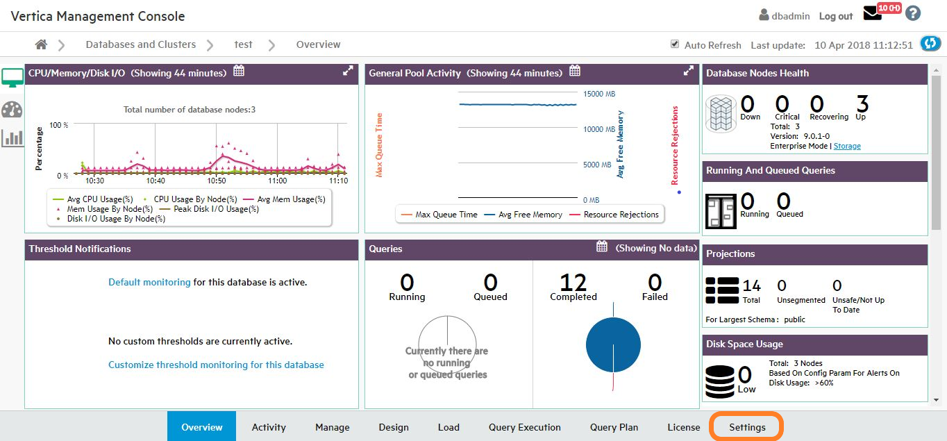 ⑪Thresholds | システムの状態を監視するための、しきい値を設定することが可能です。 |