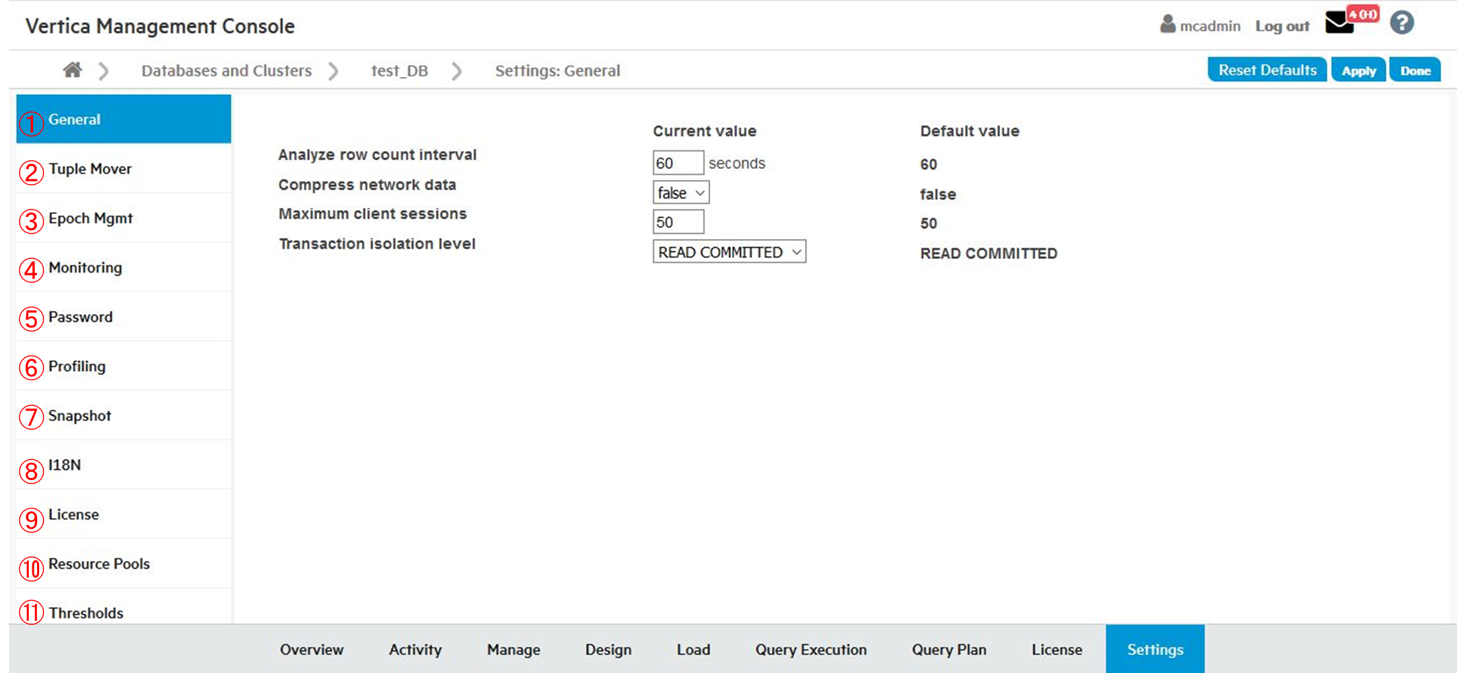 ⑩Resource Pools | リソースプールのパラメータ変更や、リソースプールの新規作成および |