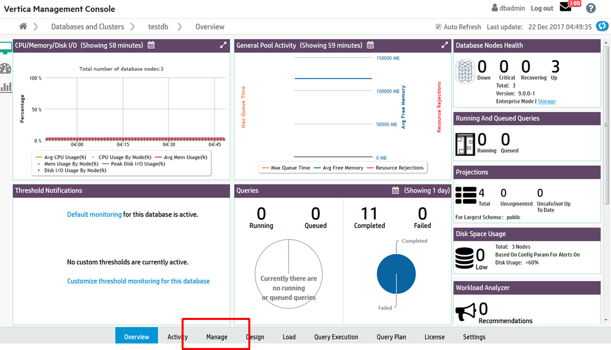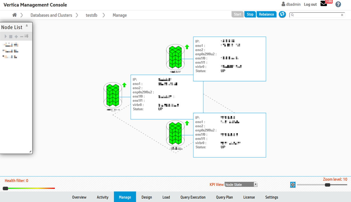 3.各ノードが赤色→緑色に変わり、データベースが起動されました。[Status]が[UP]になっていることを確認します。