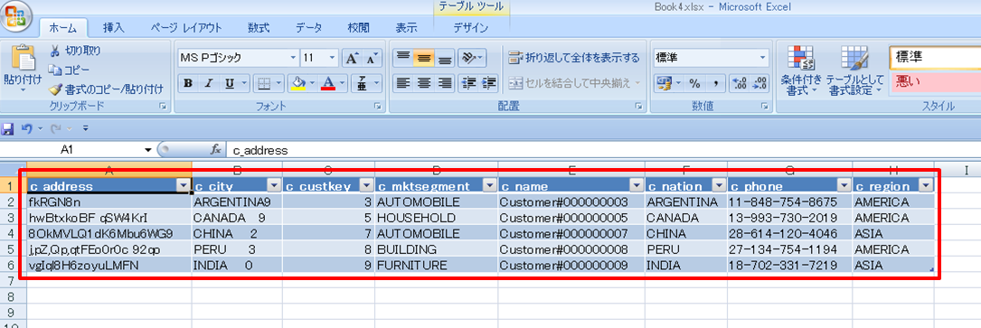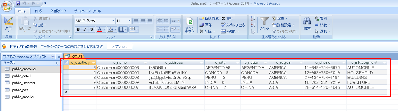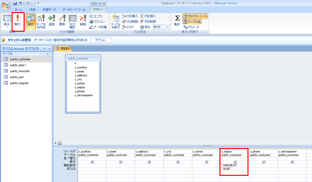 5. [クエリの実行]を選択し、実行結果を確認します。