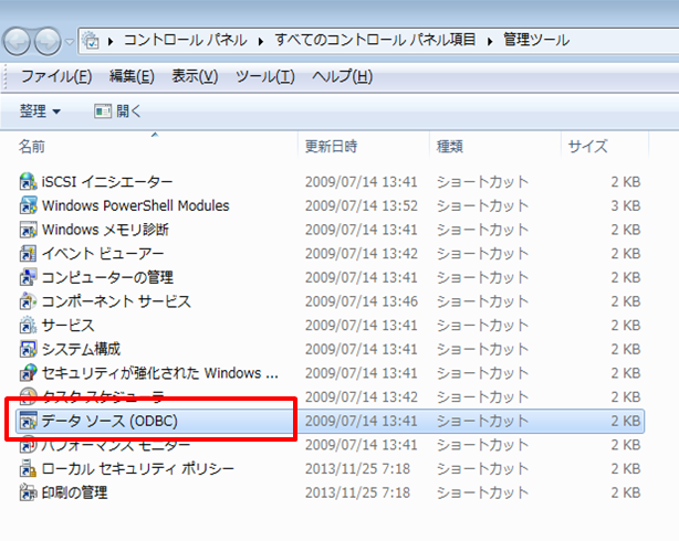 1. Verticaデータベースに接続するために、Windowsの[コントロール パネル] > [管理ツール] > [データ ソース (ODBC)] からODBCの設定をおこないます。