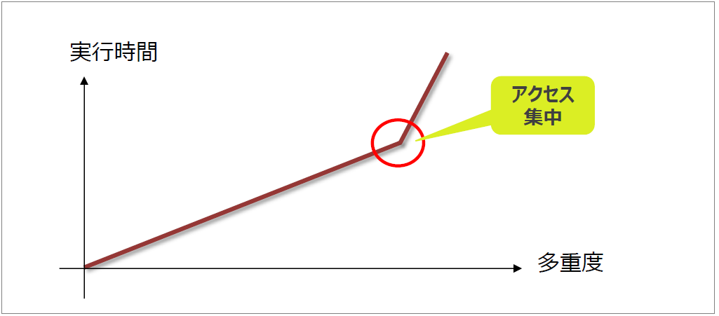 利用者からの同時処理数が増え、アクセスが集中する時間帯は、急激に処理の実行時間が長くなることがあります。