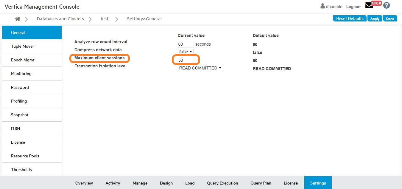 ・上限値に達した場合でも、スーパユーザ(dbadmin)は接続可能です。