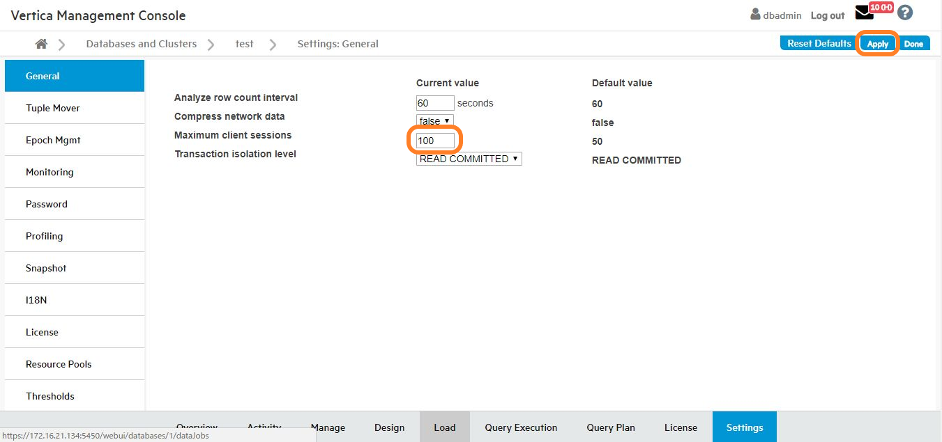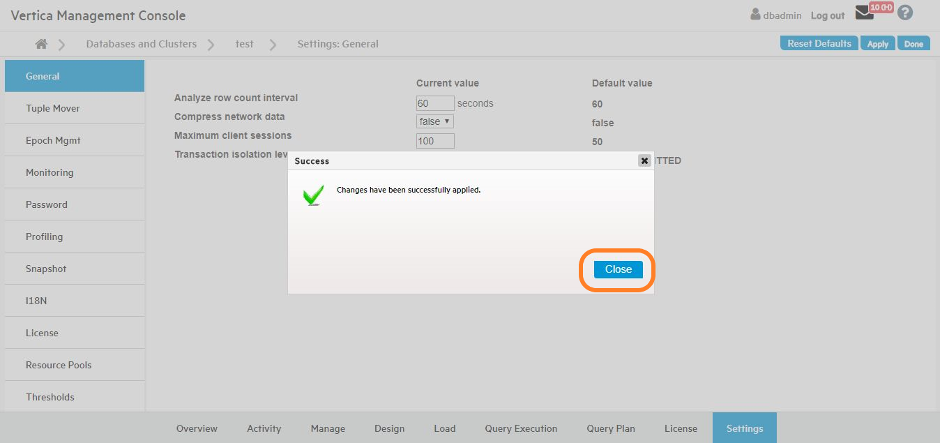 ・パラメータ変更後、即有効になります。(Verticaの再起動は不要)